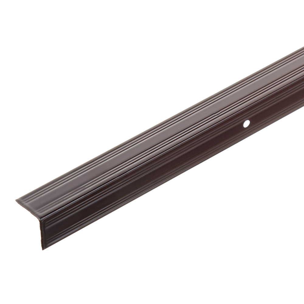 Порог угловой. Предназначен для фиксации краев напольных покрытий на ступенях, защиты угловых поверхностей ступеней, а также для препятствия скольжению. Комплектуется саморезами и дюбелями.