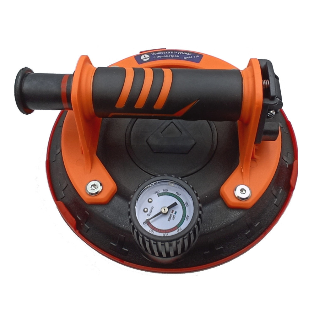 Предназначена для подъема, переноса и монтажа керамической плитки, плитки из натурального камня, керамогранита, стекла, и других непористых материалов с глянцевой поверхностью. Присоска имеет невысокий вес и прочную конструкцию, снащена манометром давления для визуального контроля фиксации присоски на материале. Оснащена помпой нагнетания отрицательного давления и кнопкой сброса давления для снятия присоски с плитки. Высокая надежность, обеспечивается за счет визуального контроля за состоянием вакуума на шкале манометра, а также на контрольной метке поршня.