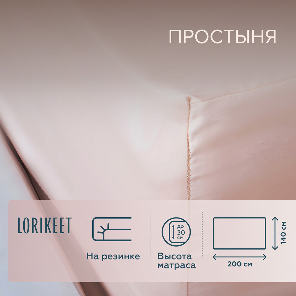 Простыня на резинке 140х200х30 см сатин пудровая Lorikeet Solo