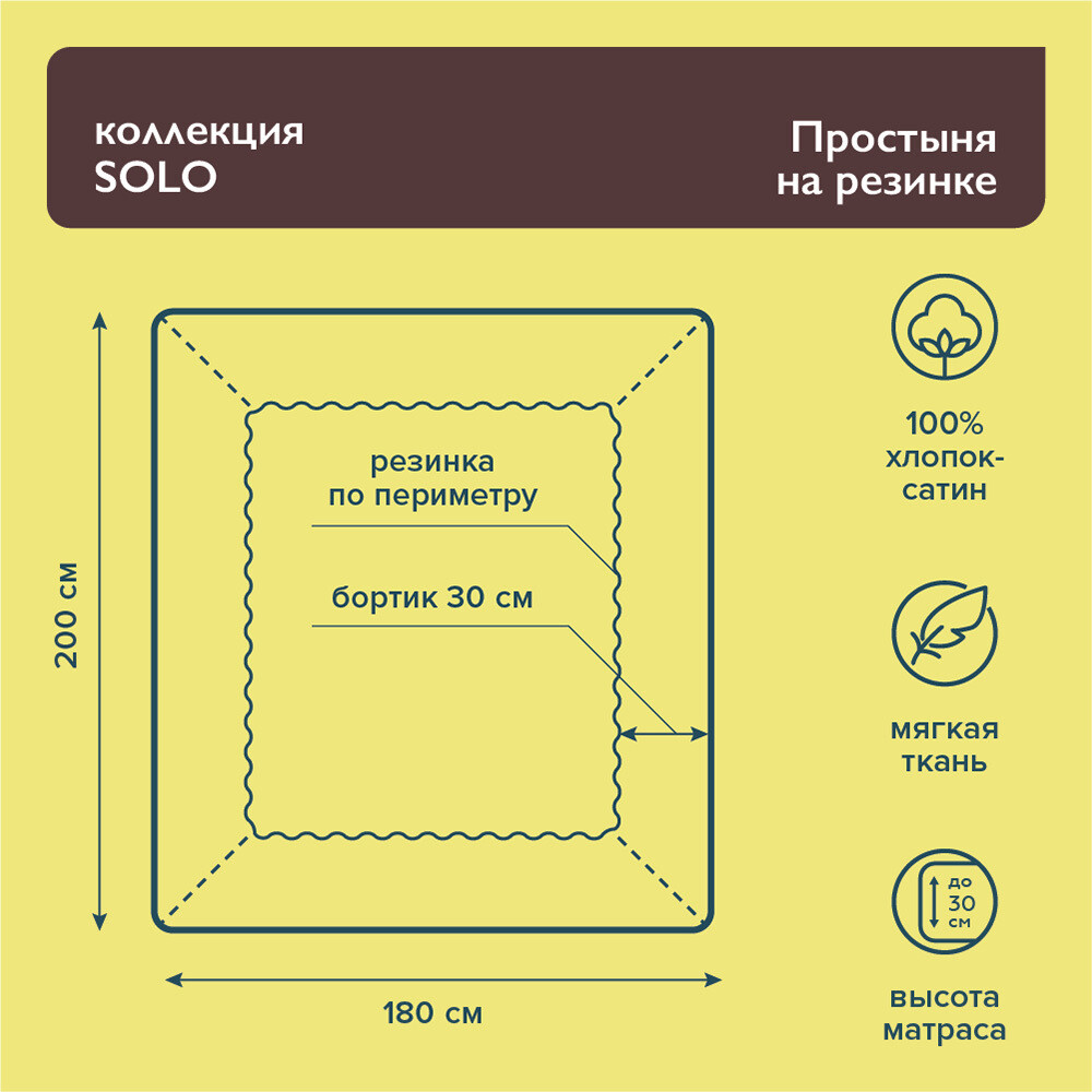 • Простыня на резинке с увеличенной высотой борта 30 см.