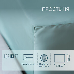 Простыня на резинке 180х200х30 см сатин шалфей Lorikeet Solo