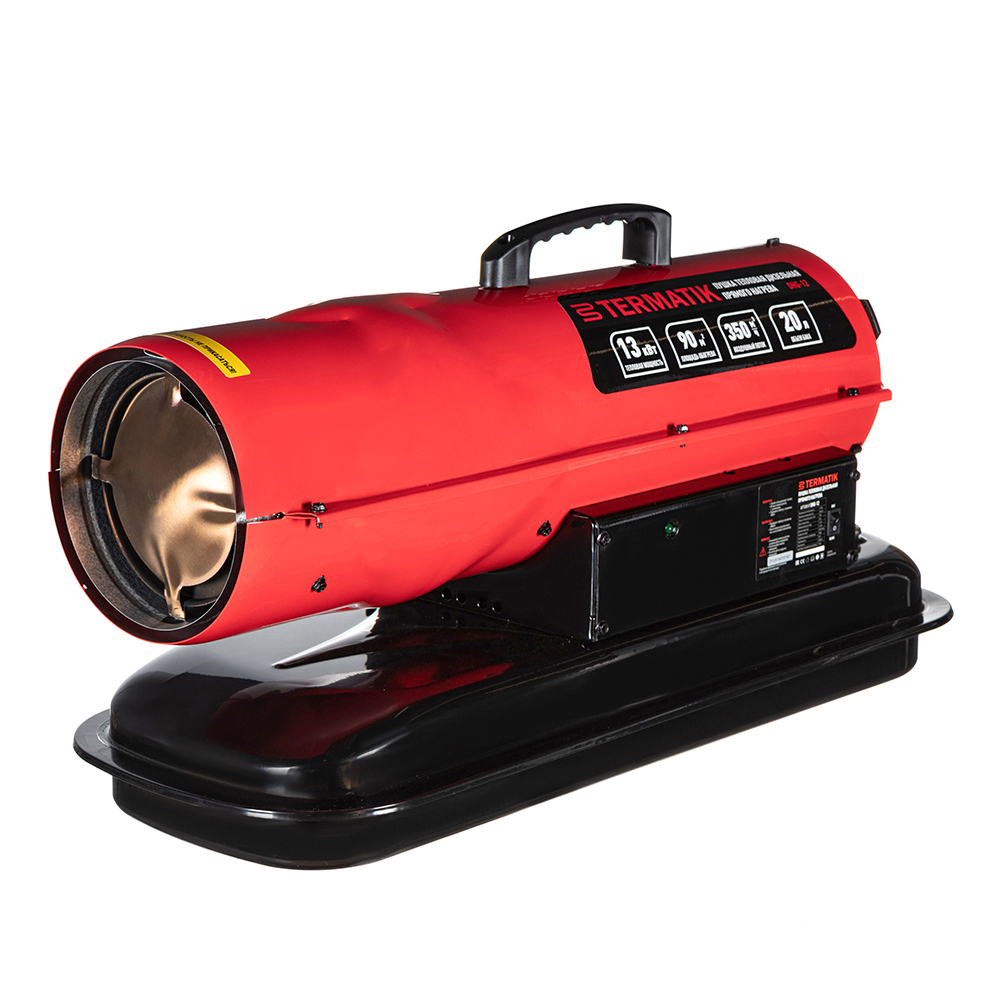 Тепловая дизельная пушка Termatik DHG-12 предназначена для обогрева и просушки воздуха или поверхностей на крупных строительных объектах, складских помещений, цехов и других помещений площадью до 90 м2, в условиях, исключающих попадание на него капель, брызг, а также атмосферных осадков. Данная тепловая пушка прямого нагрева работает на дизельном топливе и предназначена только для промышленного использования. Пушка оснащена защитой от перегрева, системой контроля пламени и системой электрозащиты. Подключение прибора – сетевой кабель с вилкой в комплекте. Данная модель рассчитана на питание от электросети переменного тока напряжением 220 В и частотой 50 Гц.
