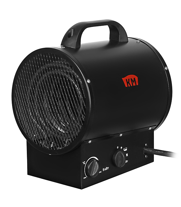 Тепловая электрическая пушка КМ HF5000B предназначена для быстрого обогрева и просушки производственных, торговых, складских и других помещений площадью до 48 м2. Нагревательный элемент – трубчатый. Пушка оснащена защитой от перегрева и термостатом для работы в автономном режиме с поддержанием заданной температуры. На корпусе тепловой пушки находится регулятор температуры. Подключение прибора – сетевой кабель без вилки. Данная модель рассчитана на питание от электросети переменного тока напряжением 220 В и частотой 50 Гц.