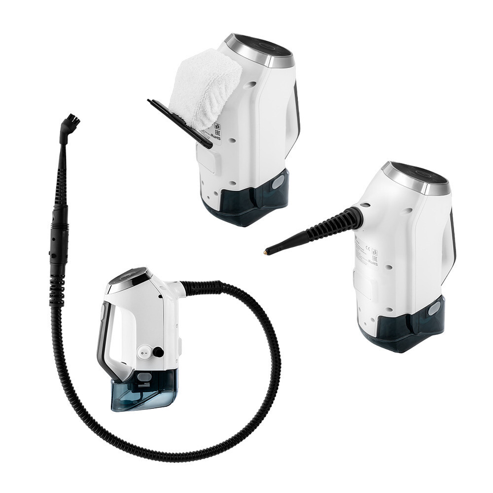 Комплектация: Пылесос с установленным резервуаром для воды, пылесборником, фильтрами и щеткой для пола — 1 шт. Удлинительная трубка — 1 шт. Держатель тряпки — 1 шт. Тряпка для пола — 3 шт. Ручной пароочиститель — 1 шт. Шланг — 1 шт. Струйная насадка — 1 шт. Резиновый скребок для стекла — 1 шт. Плоская нейлоновая щетка — 1 шт. Насадка для отпаривания — 1 шт. Круглая нейлоновая щетка — 2 шт. Латунная щетка — 1 шт. Тряпка для отпаривания — 1 шт. Руководство по эксплуатации — 1 шт. Гарантийный талон — 1 шт. Коллекционный магнит — 1 шт. опционально