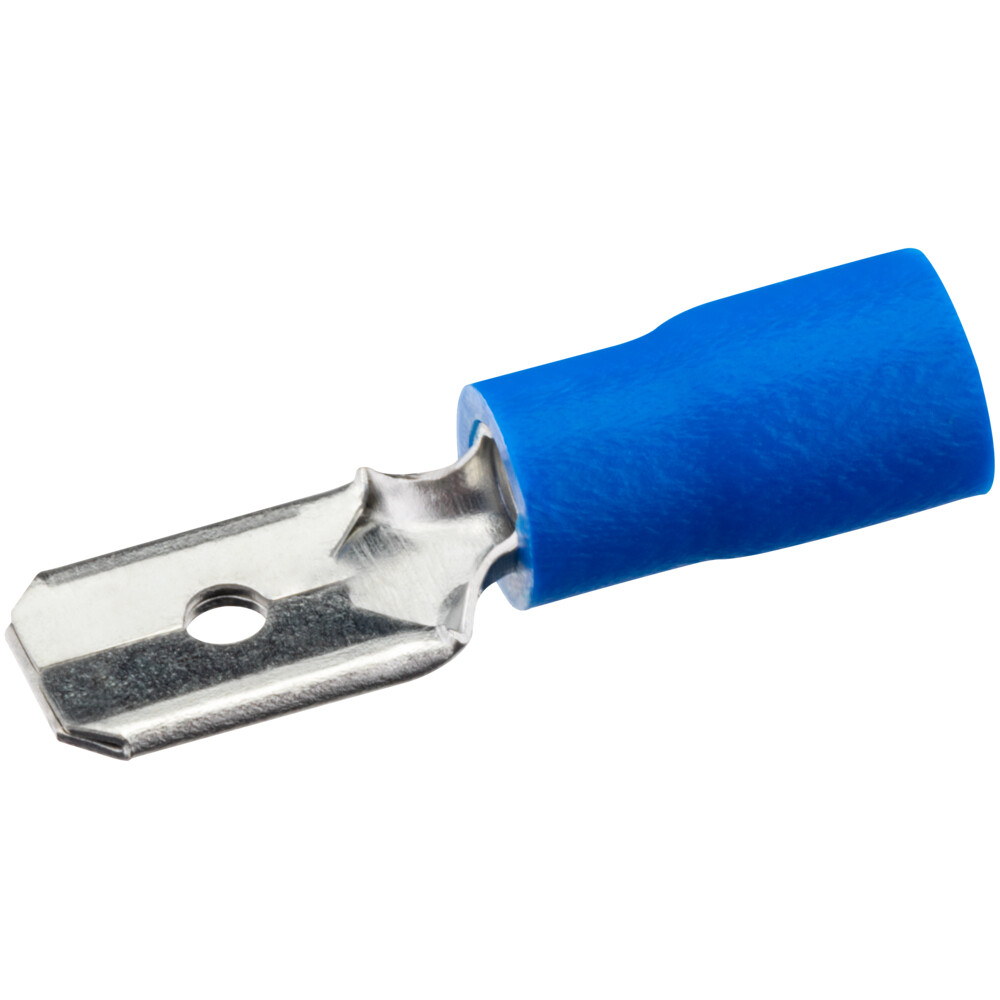 Плоский изолированный наконечник РпИп 2,5-6,3 (папа) предназначен для монтажа быстроразъемных соединений медных проводов сечением от 1,5 до 2,5 мм2.