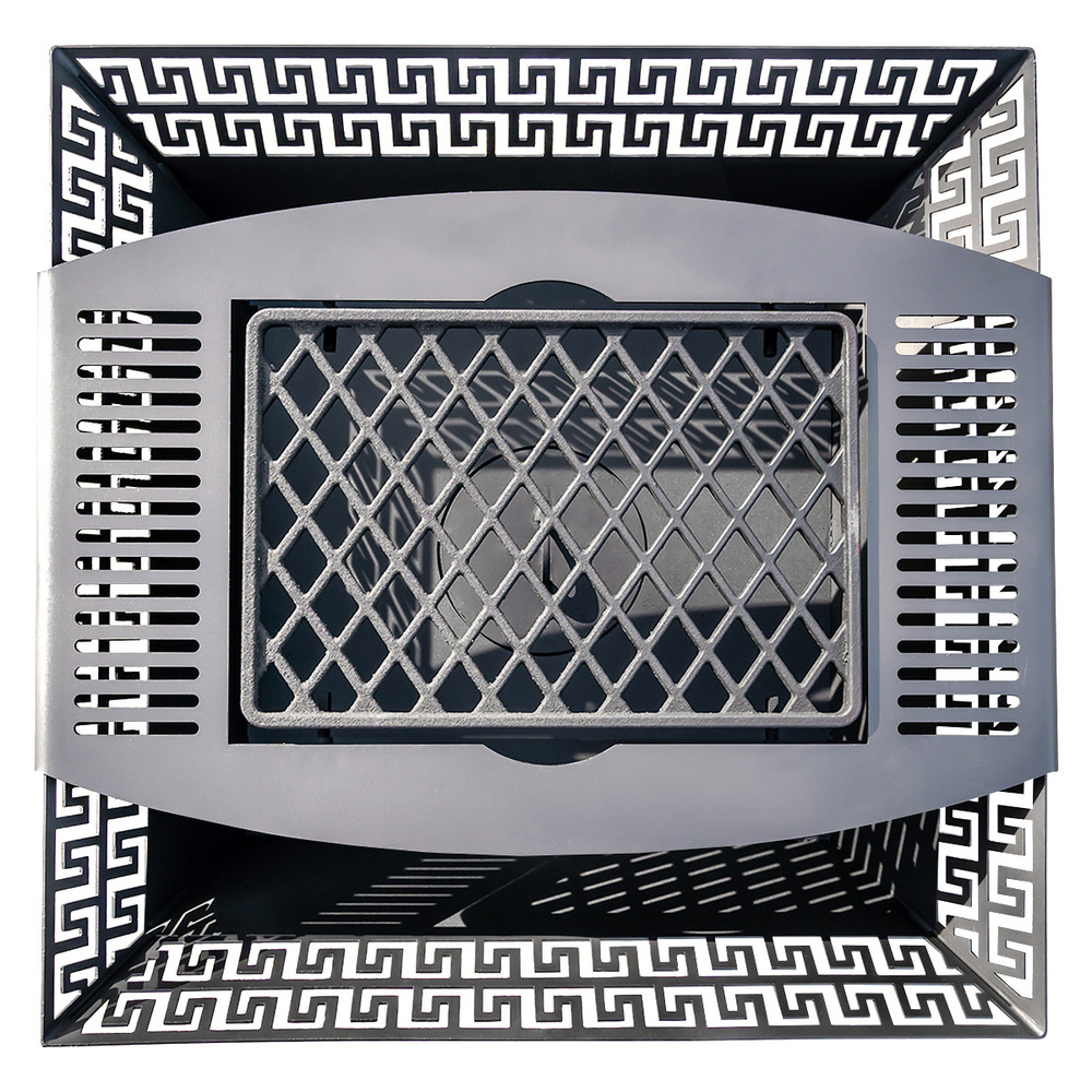Решетка состоит из 2 частей — стальной подставки и чугунной вставки, которая имеет размер 255х375х20 мм. Решетка идеально подходит к очагам габаритами 620х620 мм, например, «Афины», «Листья» или «Ибица». Поверхность изделия равномерно распределяет тепло по всей поверхности, благодаря чему решетка идеально подходит для приготовления сочных стейков. При обжарке на мясе образуется красивый и эстетичный рисунок. Решетка оснащена каркасом, чтобы вы смогли удобно закрепить аксессуар на костровой чаше. Чтобы облегчить конструкцию, мы сделали каркас из прочной стали. Металл покрыт несколькими слоями термоустойчивого грунта и слоем термокраски — таким образом мы защитили металл от коррозии и увеличили срок службы изделия.