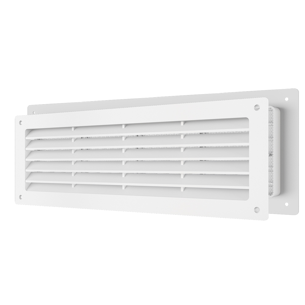 Для установки в мебель, в двери ванных комнат, туалетов, кухонь и т.д. Может устанавливаться в подоконники для правильного распределения теплого воздуха от батарей центрального отопления. Способствует правильной циркуляции воздуха внутри помещений. Изготавливается из высококачественного пластика. Крепление при помощи шурупов непосредственно к дверному полотну или подоконнику.