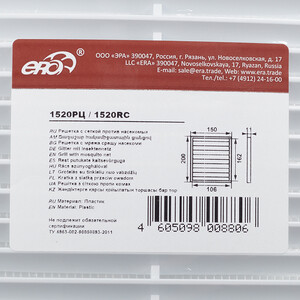 Решетка вентиляционная пластиковая приточно-вытяжная Era РЦ 150х200 мм с сеткой белая