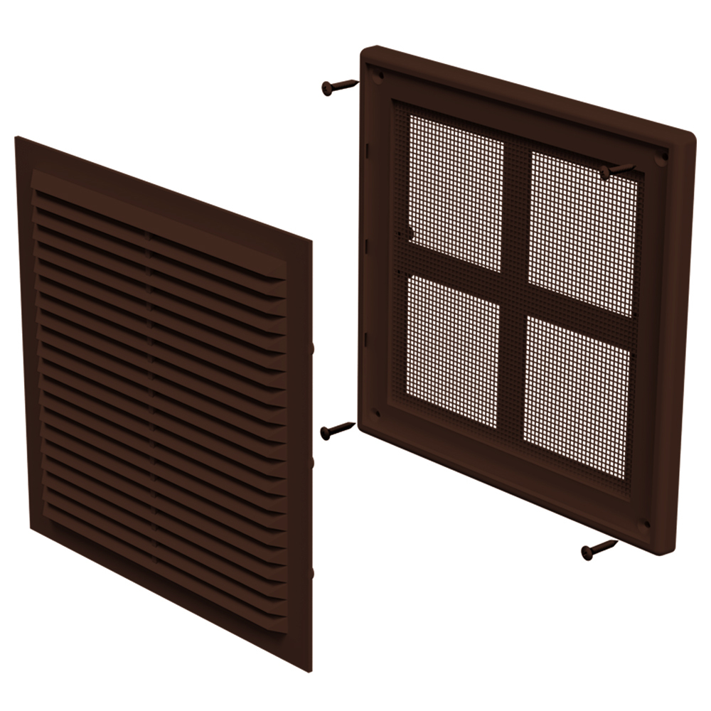 Решетка вентиляционная пластиковая приточно-вытяжная НашВент 204х204 мм с сеткой коричневая