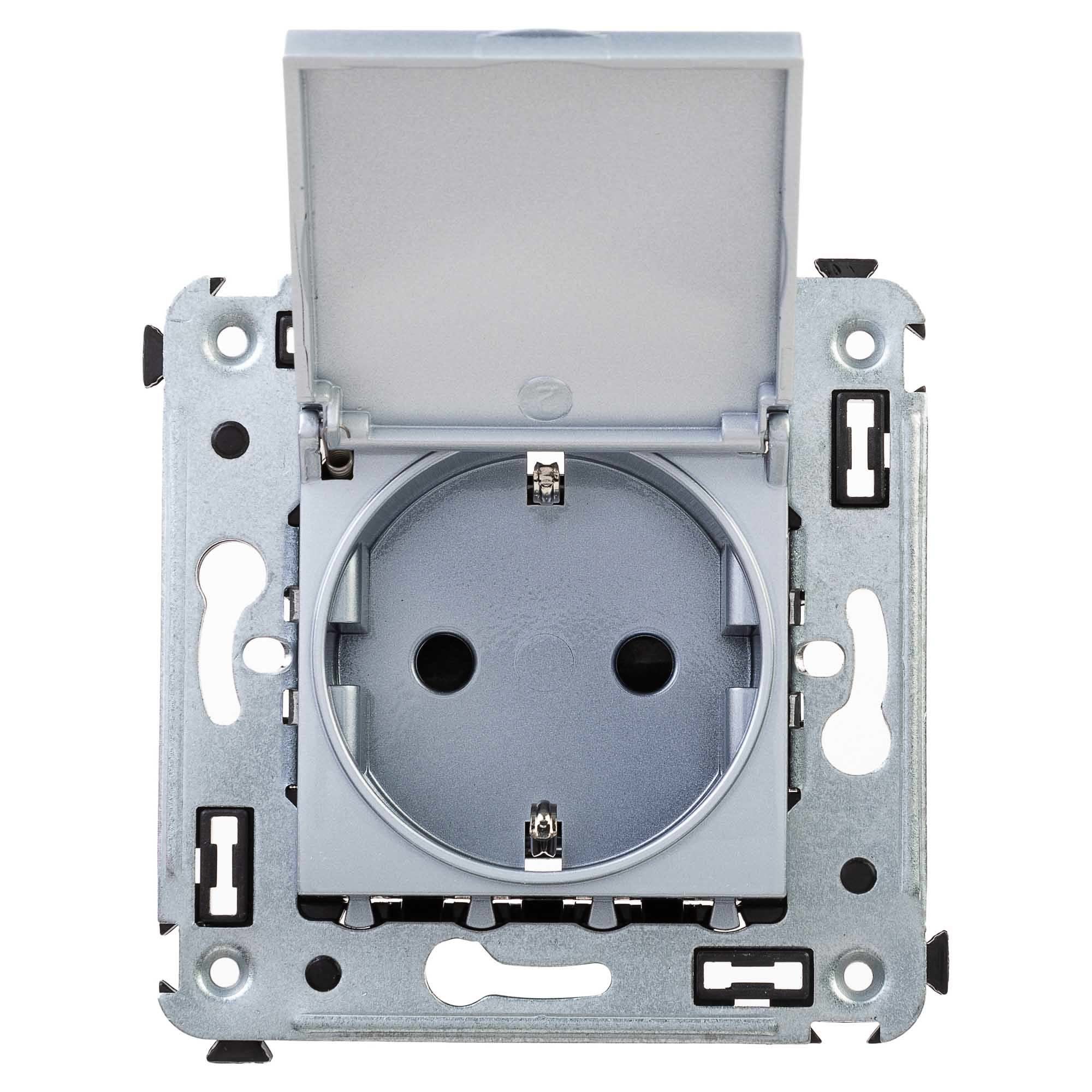 Розетка DKC Avanti встраиваемая серебристая с крышкой (1495218)