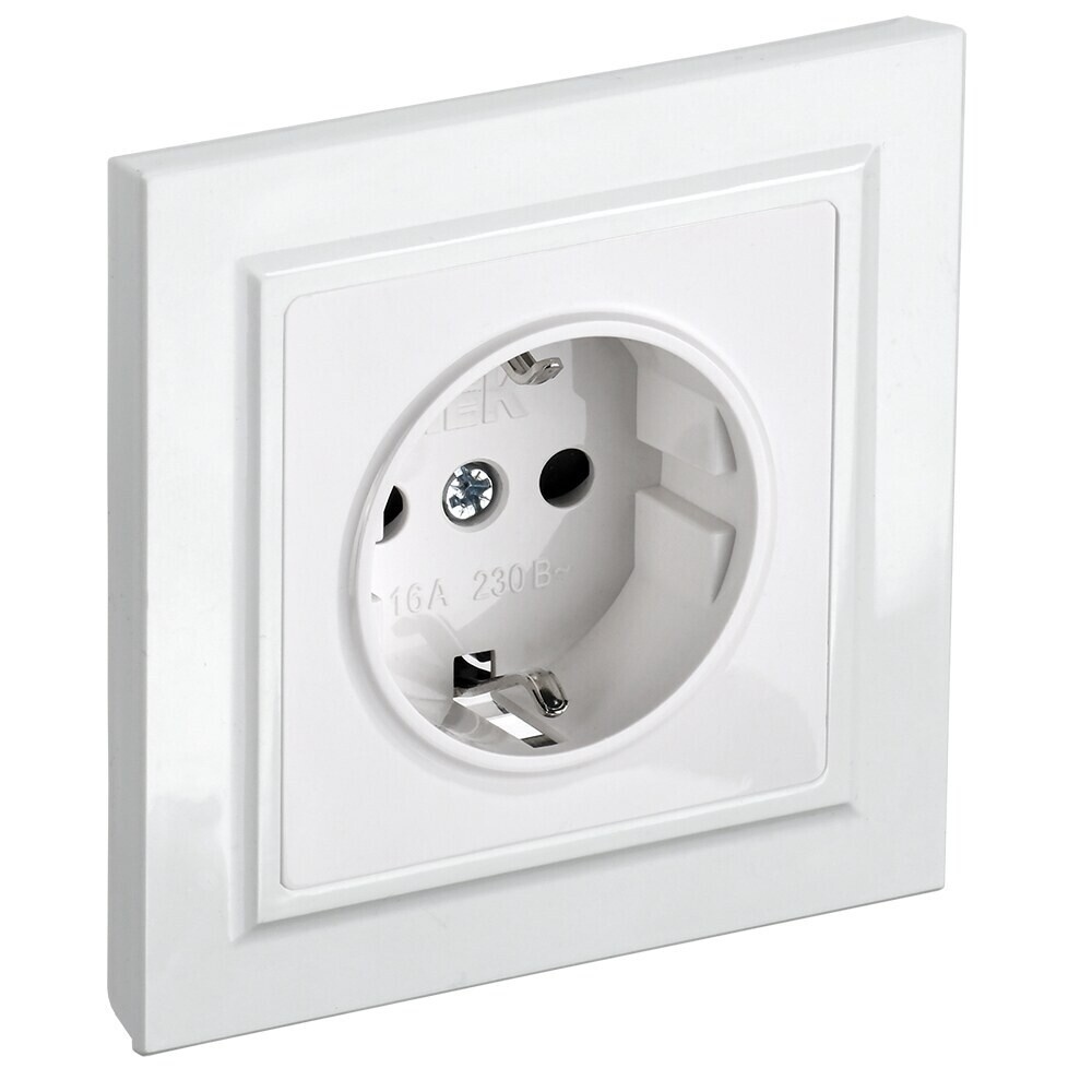 Розетка IEK Brite РС14-1-0-БрБ встраиваемая белая со шторками (BR-R14-16-K01)
