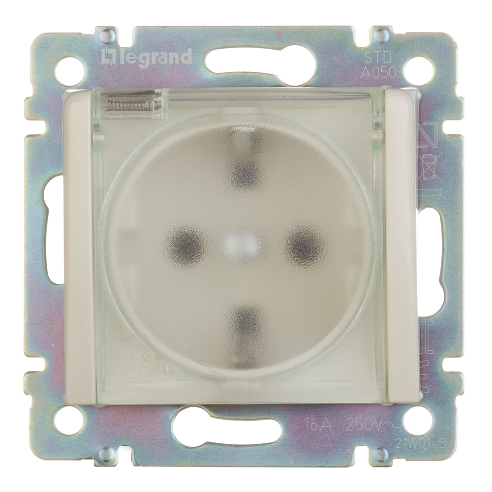 Розетка Legrand Valena встраиваемая слоновая кость со шторками с крышкой (695640)