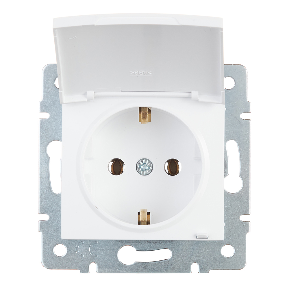 Предназначена для подключения электроприборов к силовой электрической сети в сухих и влажных помещениях. Розетка с контактами заземления, с крышкой, белая, скрытой установки.