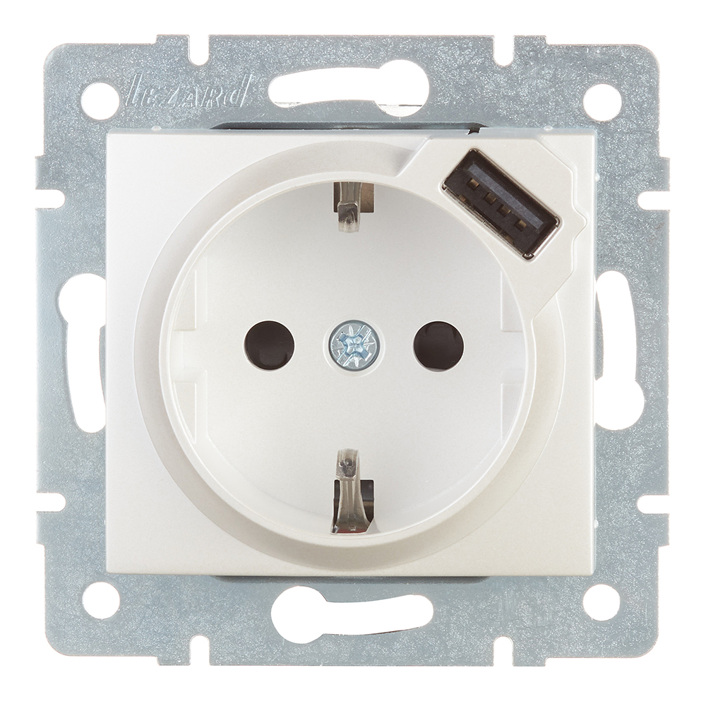 Розетка Lezard Karina встраиваемая жемчужно-белая с USB-A (707-3088-181)