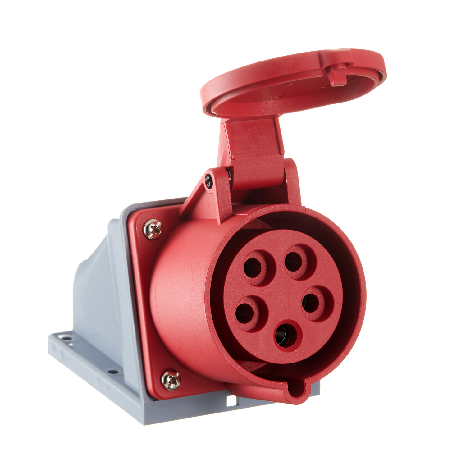 Розетка силовая угловая настенная Dekraft РС-103 с заземлением 3P+N+PE 3 фазы 32 А 380 В IP44 красная (26195DEK)