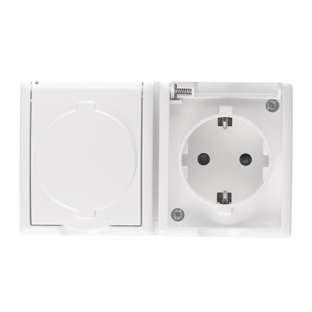 Розетка Simon 15 Aqua накладная белая со шторками с крышкой (1594443-030)