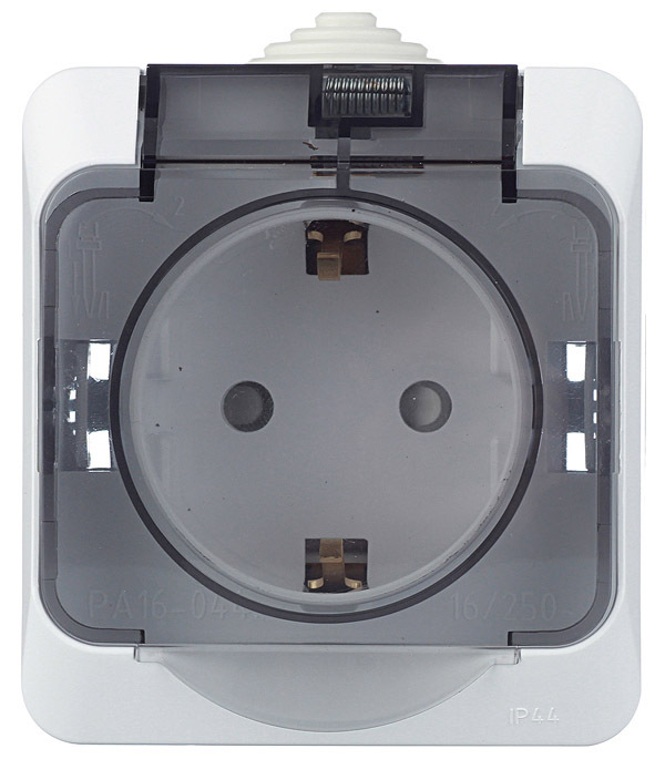 Розетка Systeme Electric Этюд накладная белая со шторками с крышкой (PA16-044B)