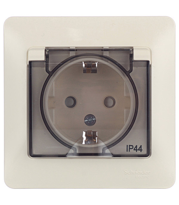 Розетка Systeme Electric Glossa встраиваемая бежевая со шторками с крышкой (GSL000248)