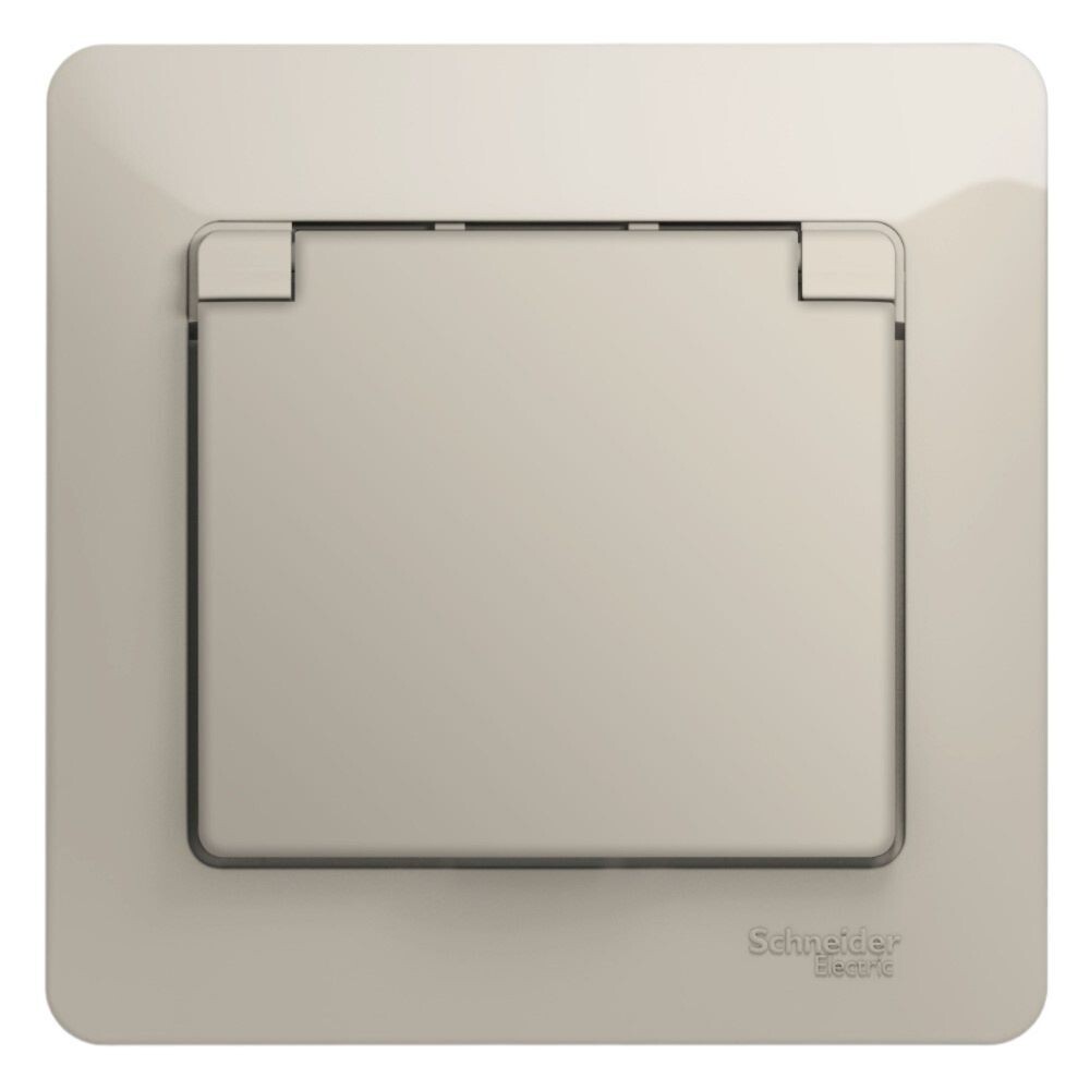 Розетка Systeme Electric (ранее Schneider Electric) серии Glossa (в сборе) одинарная с заземлением, шторками и крышкой подходит для сетей 250 В, на ток 16 А.