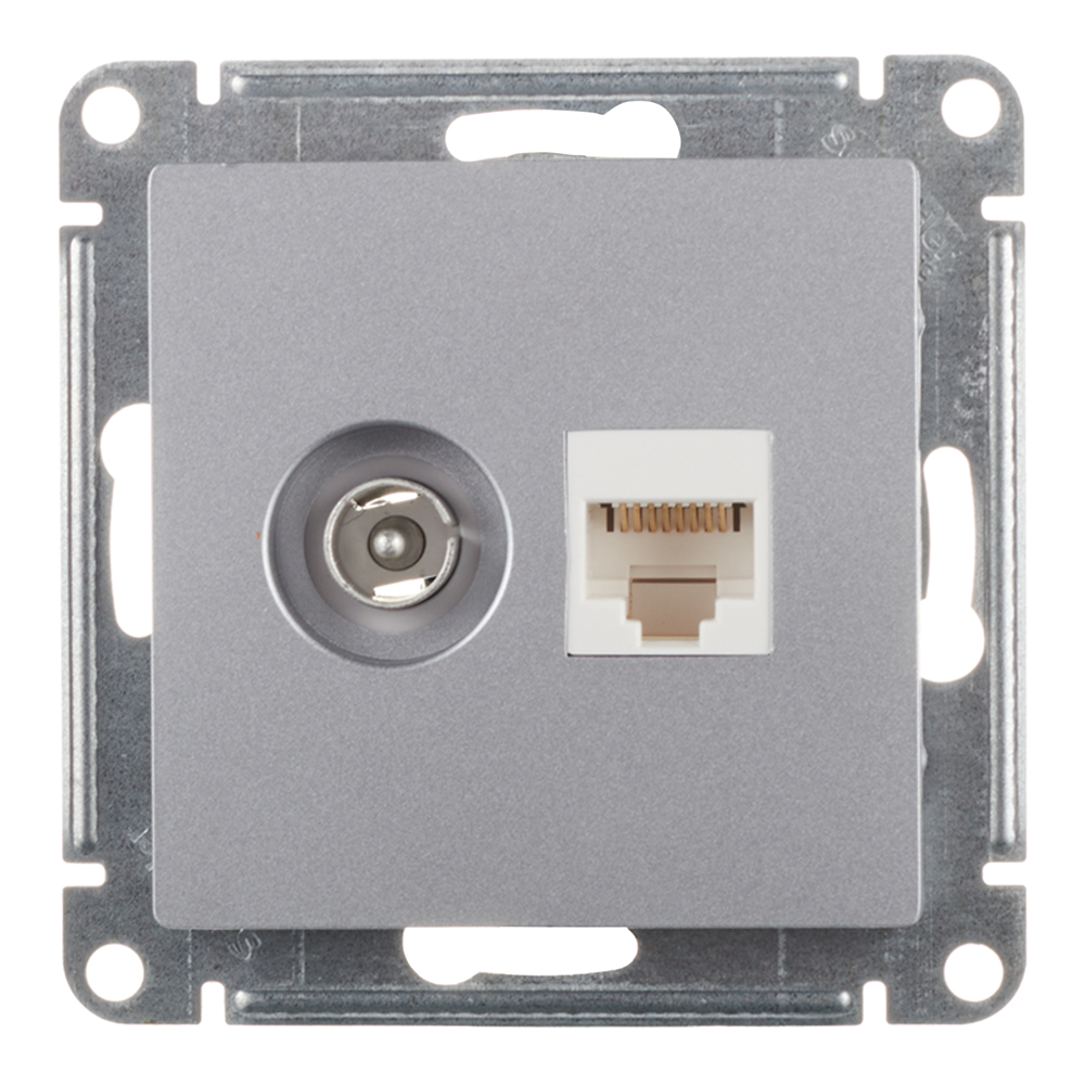 Розетка телевизионная/ компьютерная Systeme Electric AtlasDesign встраиваемая алюминий TV/ RJ45 (ATN000389)