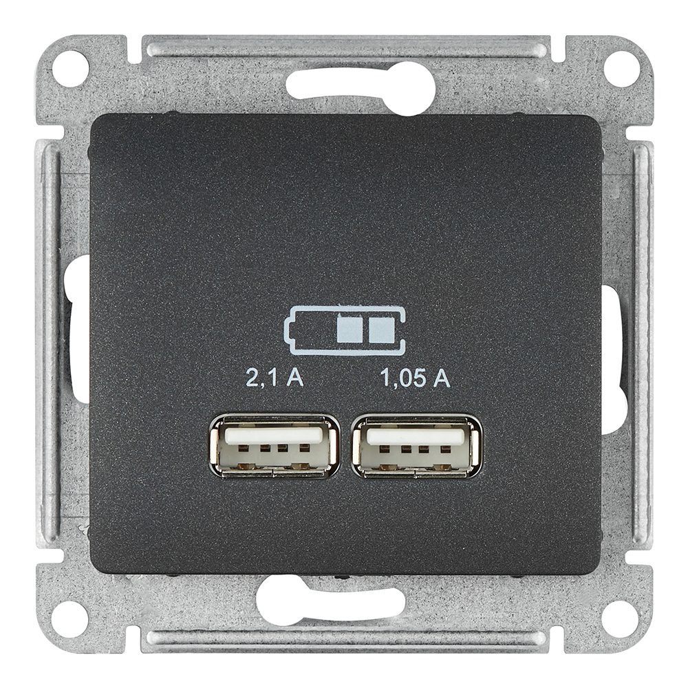 Розетка USB Systeme Electric Glossa встраиваемая антрацит 2хUSB-A (GSL000733)