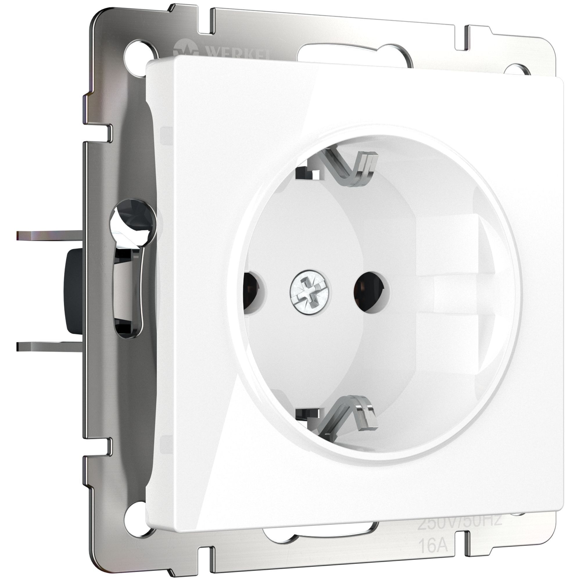 Внешняя лицевая панель выполнена из высококачественного поликарбоната, устойчивого к высоким температурам. Встраиваемая розетка с заземлением совместима со всеми рамками из коллекций Werkel, характеризуется удобством использования и обеспечивает надежный контакт. Безвинтовой зажим розетки позволяет ускорить процесс монтажа на 30-40%.