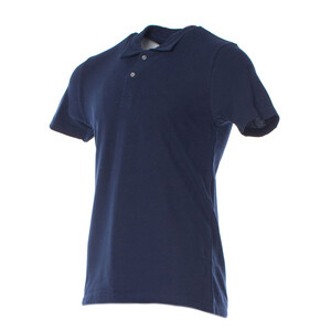 Рубашка поло прямого покроя, с коротким втачным рукавом, отложным воротником и планкой с застежкой из трех пуговиц.