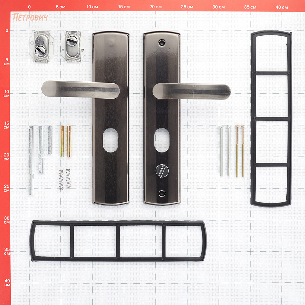 Комплектация: две ручки, винтовые стяжки, пластиковые прокладки и квадратный штырь (8х8 мм) 110 мм.
