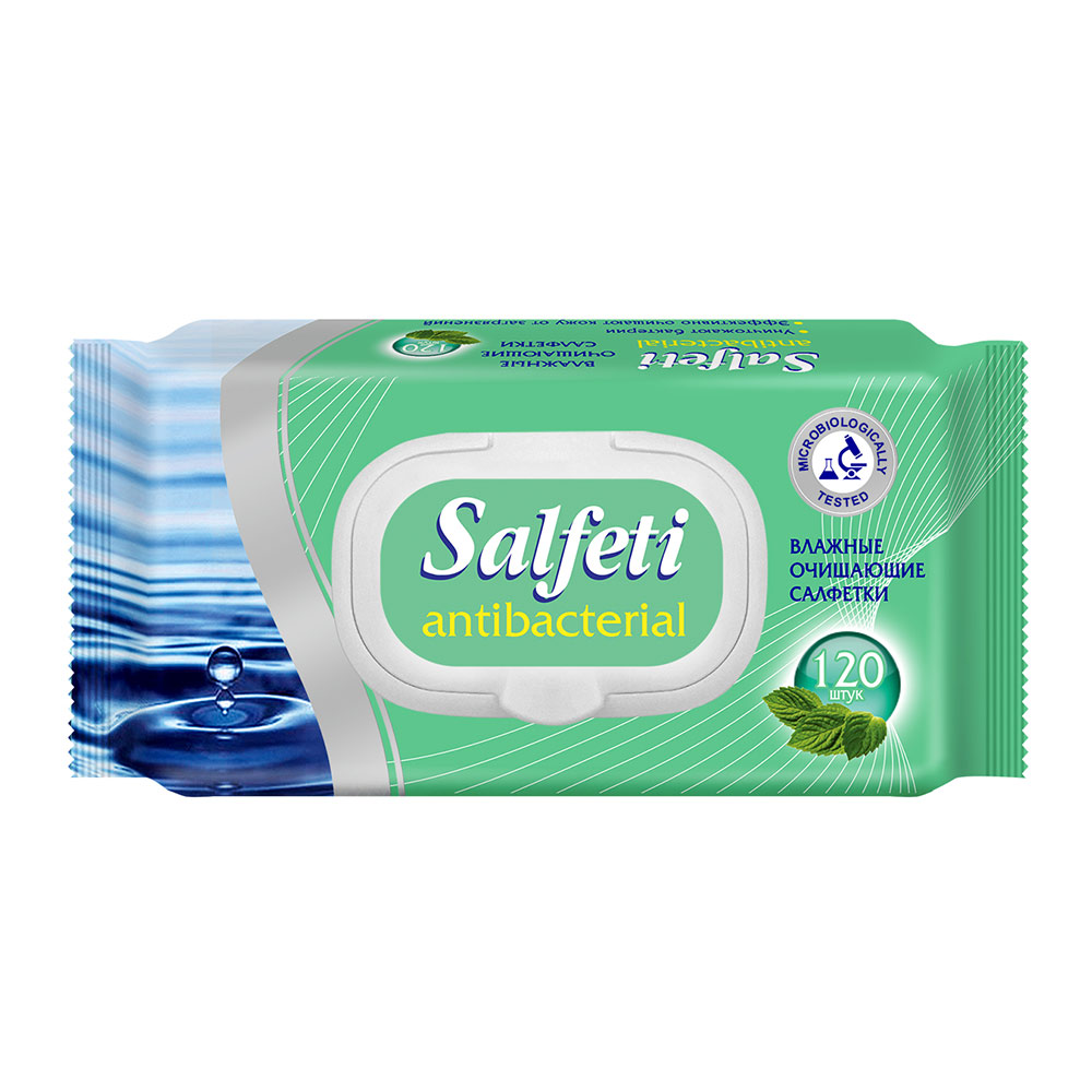 Салфетки влажные антибактериальные Salfeti с клапаном (120 шт.)