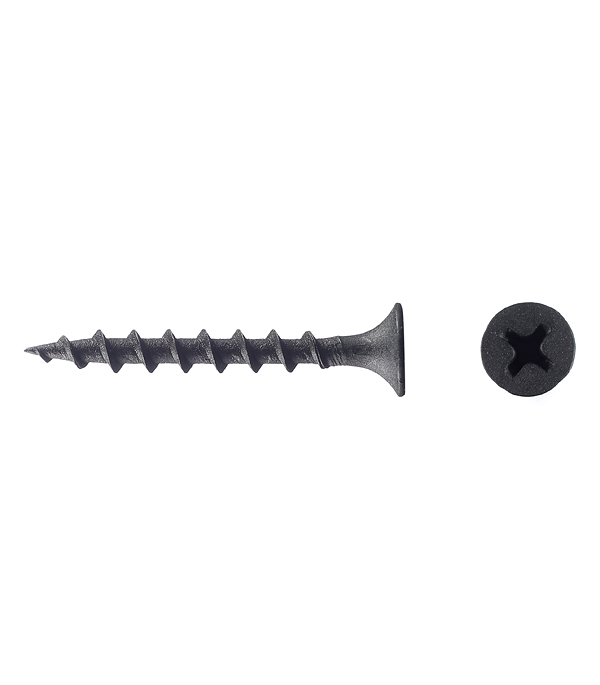 Саморезы имеют потайную головку с крестообразным шлицем PH2, острый наконечник и редкую резьбу. Производятся из углеродистой стали с последующим оксидированием для защиты от коррозии.