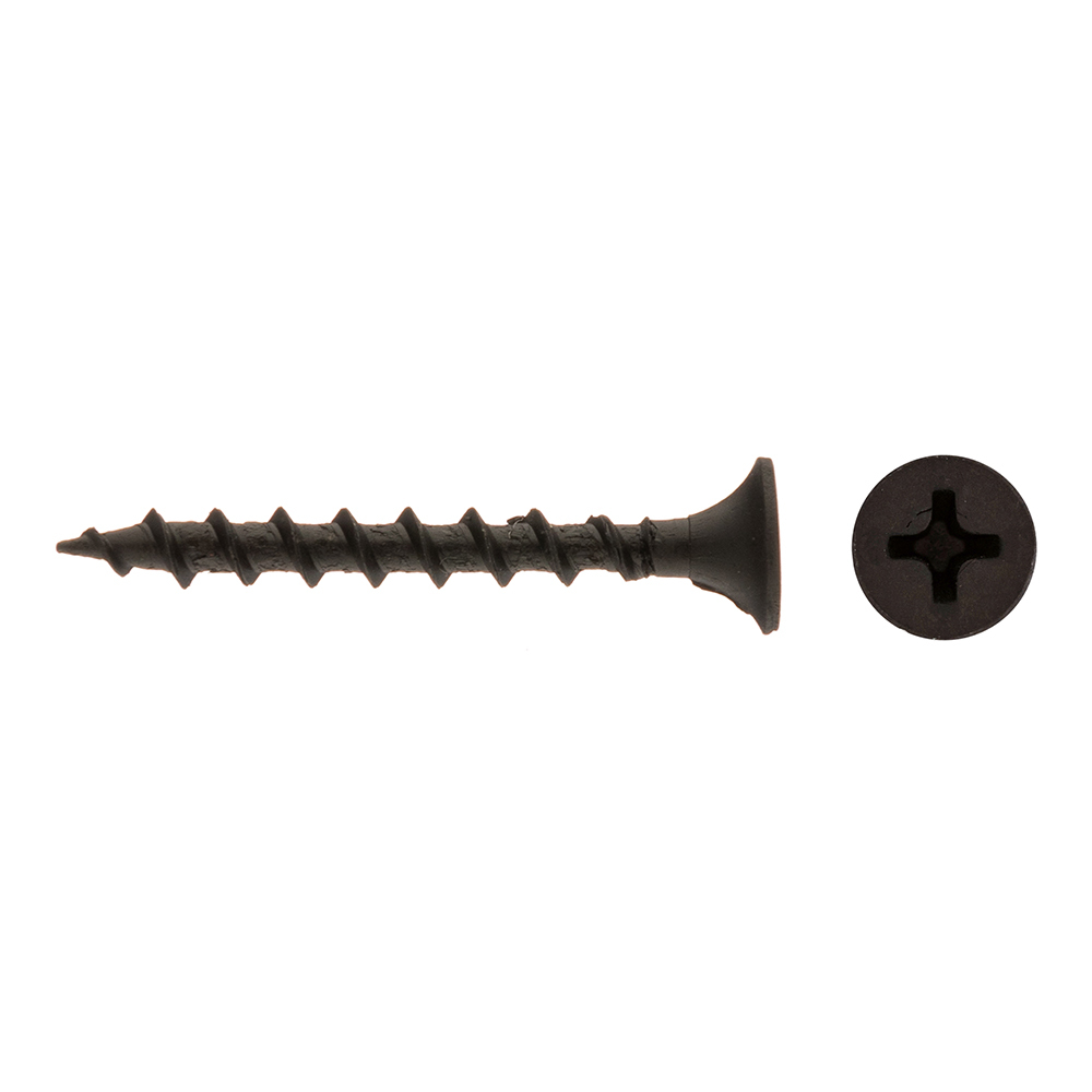 Саморезы имеют потайную головку с крестообразным шлицем PH2, острый наконечник и редкую резьбу. Производятся из углеродистой стали с последующим оксидированием для защиты от коррозии.