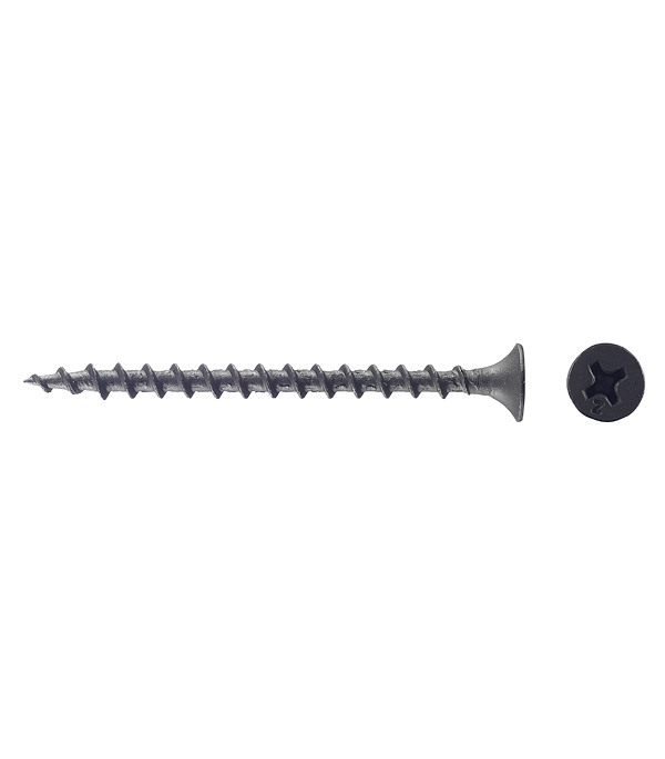 Саморезы имеют потайную головку с крестообразным шлицем PH2, острый наконечник и редкую резьбу. Производятся из углеродистой стали с последующим оксидированием для защиты от коррозии.