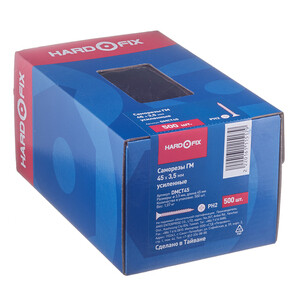 Главная / Каталог / Крепеж / Саморезы и шурупы / Саморезы по металлу / Саморезы гипсокартон-металл / Саморезы ГМ 45×3,5 мм усиленные Hard-Fix (500 шт.)