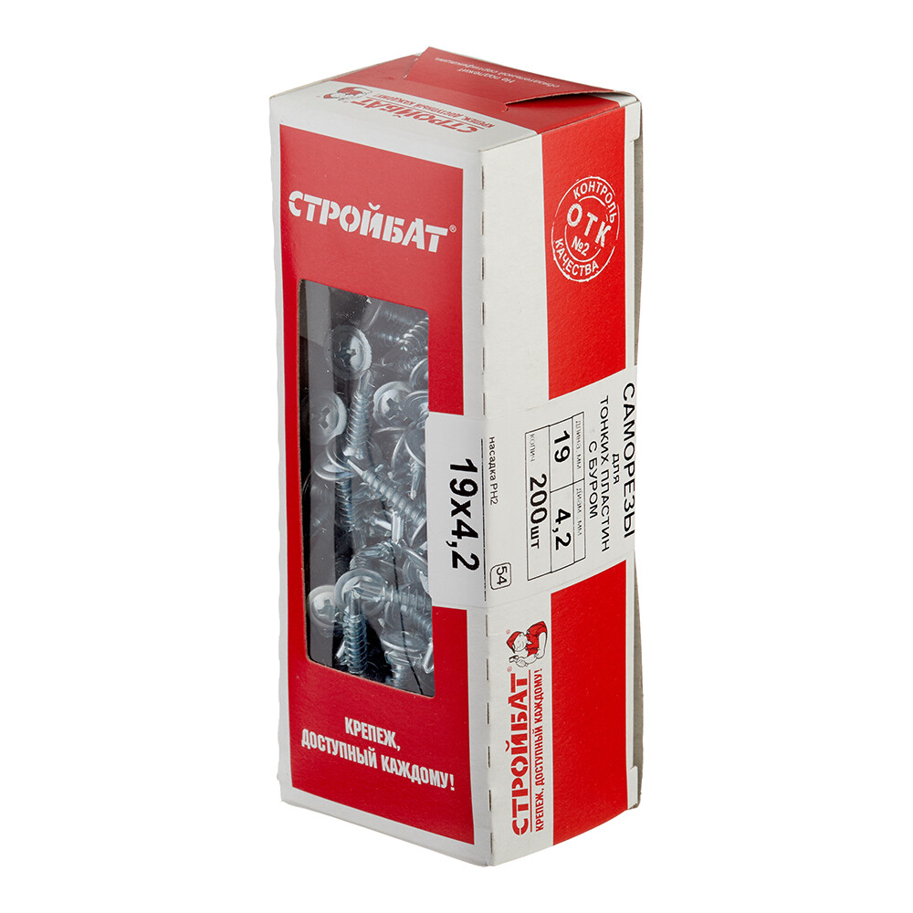 Главная / Каталог / Крепеж / Саморезы и шурупы / Саморезы по металлу / Саморезы с прессшайбой / Саморезы клопы 19×4,2 мм с буром (200 шт.)