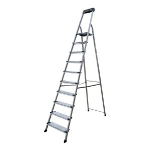 0 ₽Стремянка алюминиевая 10 ступеней 130 мм с лотком-органайзером 2,13 м Новая высота