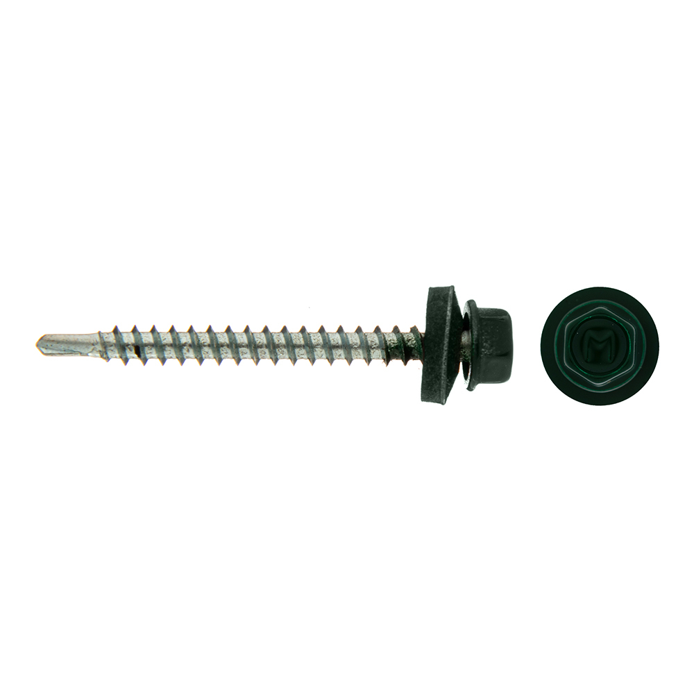 Саморезы кровельные с буром 50х4,8 мм металл-дерево зеленые RAL 6005 (40 шт.)