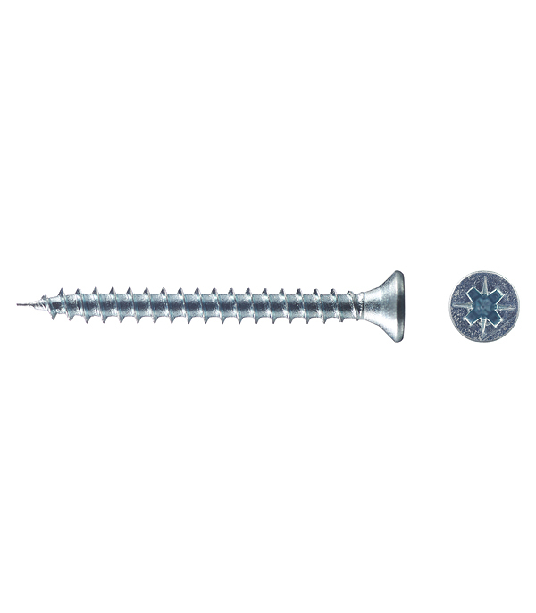 Саморезы имеют потайную головку с крестообразным шлицем PZ 1 и острый наконечник. Производятся из оцинкованной стали.