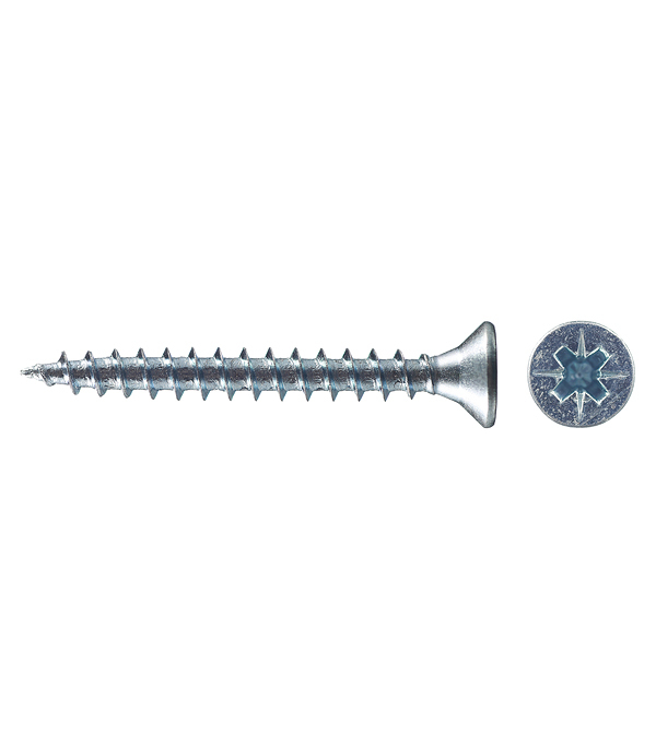 Саморезы имеют потайную головку с крестообразным шлицем PZ 2 и острый наконечник. Производятся из оцинкованной стали.