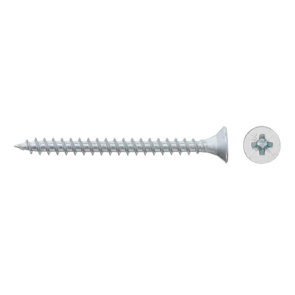 Саморезы имеют потайную головку с крестообразным шлицем PZ 2 и острый наконечник. Производятся из оцинкованной стали.