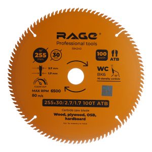 Диск пильный по дереву Rage by Vira Clean cut 255х30х1,7 мм 100 зубьев (594240)
