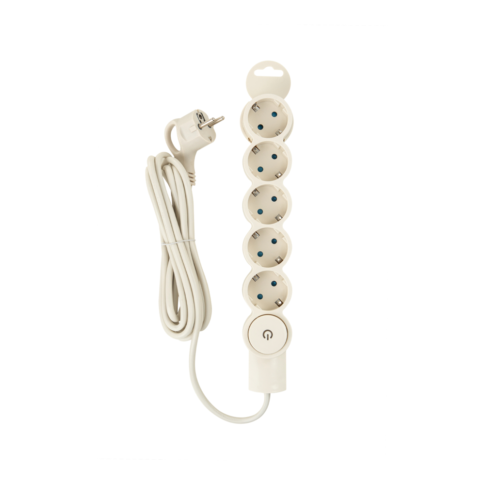 Сетевой фильтр цвета «слоновая кость», имеет 5 розеток с заземлением. Большая и удобная кнопка на корпусе позволяет включать и выключать сетевой фильтр не вынимая вилку из розетки. Индикаторная лампа внутри сигнализирует о состоянии прибора. Наличие крепления «quick fix» на корпусе позволяет подвесить корпус сетевого фильтра на крючок. Провод оснащен литой вилкой г-образной формы с заземляющим контактом и специальным отверстием для более удобного вынимания вилки из розетки. Длина провода составляет 3 метра. Отличие от обычного удлинителя, сетевой фильтр сглаживает импульсные помехи и скачки напряжения, обеспечивая безопасную работу бытового и офисного электронного оборудования.