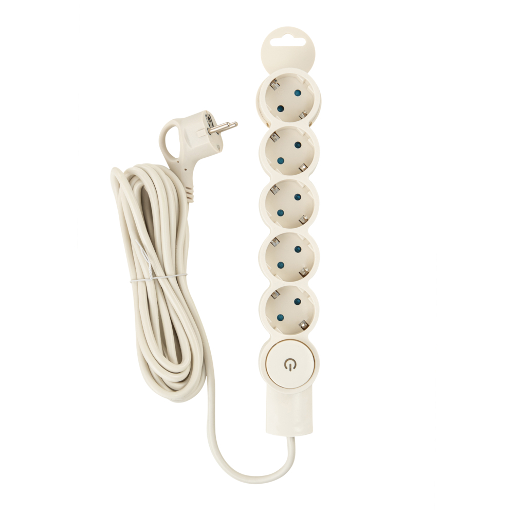 Сетевой фильтр цвета «слоновая кость», имеет 5 розеток с заземлением. Большая и удобная кнопка на корпусе позволяет включать и выключать сетевой фильтр не вынимая вилку из розетки. Индикаторная лампа внутри сигнализирует о состоянии прибора. Наличие крепления «quick fix» на корпусе позволяет подвесить корпус сетевого фильтра на крючок. Провод оснащен литой вилкой г-образной формы с заземляющим контактом и специальным отверстием для более удобного вынимания вилки из розетки. Длина провода составляет 5 метров. Отличие от обычного удлинителя, сетевой фильтр сглаживает импульсные помехи и скачки напряжения, обеспечивая безопасную работу бытового и офисного электронного оборудования.