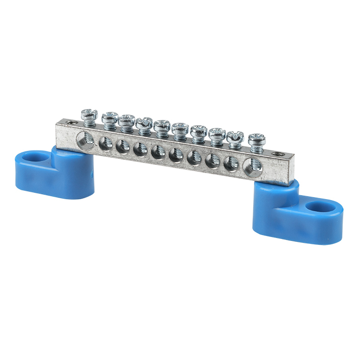 Шина нулевая на 2-х угловых изоляторах EKF PROxima 6х9 мм 10 отверстий синяя (10 шт.) (sn1-63-10-2)