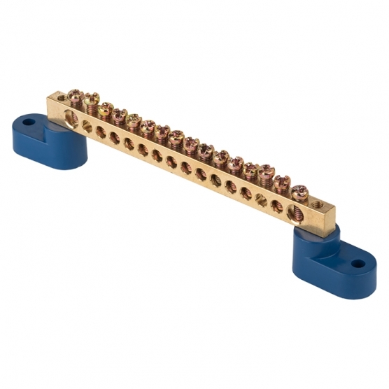 Шина нулевая на 2-х угловых изоляторах EKF PROxima 6х9 мм 16 отверстий синяя (10 шт.) (sn0-2-63-16)