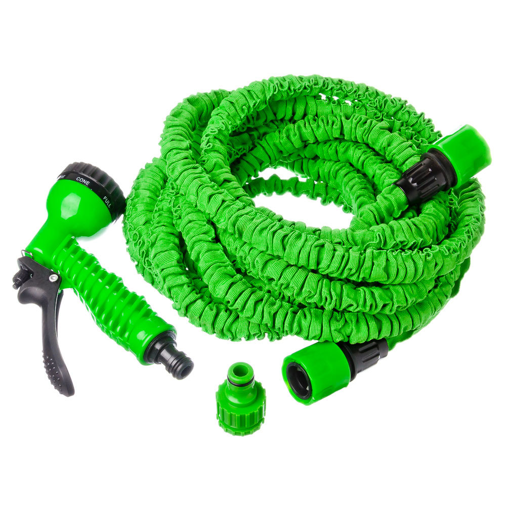 Предназначен для полива растений на открытом воздухе и в теплицах, мойки машин, окон, фасадов, садовой мебели и других уличных объектов. Оснащён коннектором для подключения и многорежимным поливочным пистолетом. После растягивания шланг легко возвращается в исходную форму, а остатки воды быстро вытекают, что экономит время и усилия. После отключения подачи воды, длина шланга сокращается ориентировочно в 3 раза.