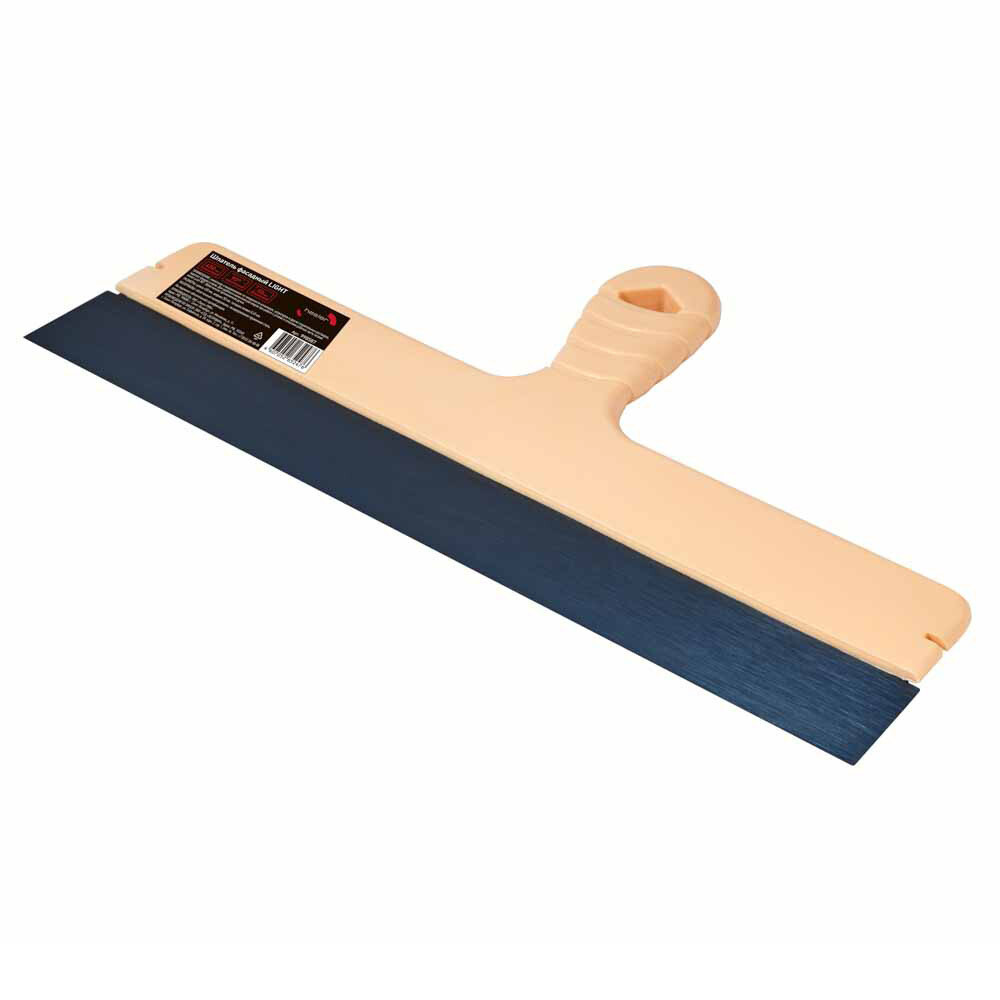 Предназначен для нанесения и выравнивания по поверхности шпаклевок, штукатурок и других строительных растворов, подходит для заделки трещин и швов. Прямой угол лезвия позволяет выводить угол 90 °.Облегченная эргономичная ручка.