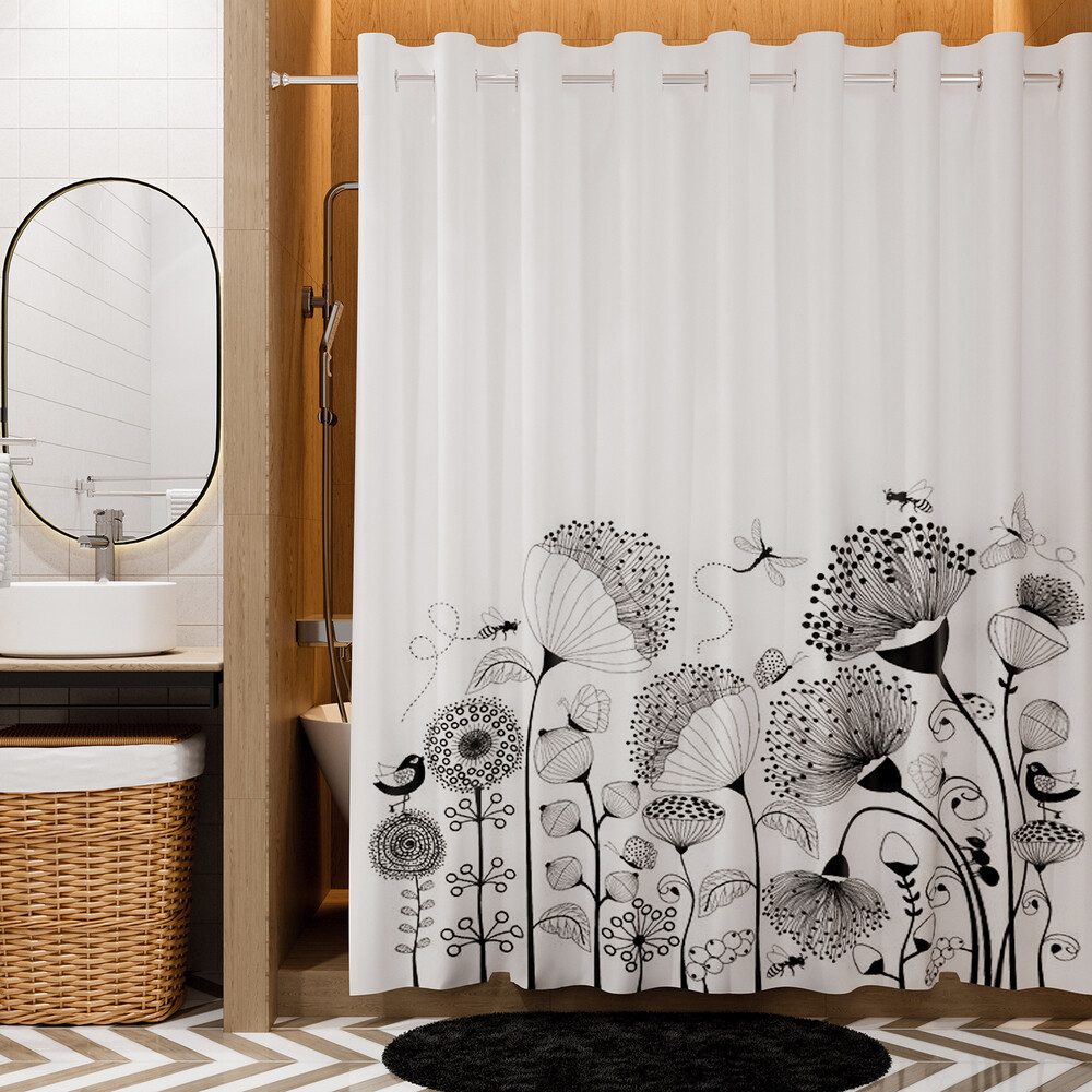 Штора для ванны WasserKraft Dill 2000х2000 мм полиэстер черная/белая (SC-39102)