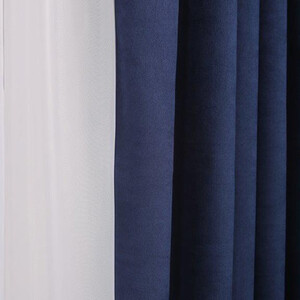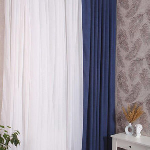 Штора из однотонной ткани софт синего цвета. Материал плотный, приятный на ощупь, с бархатистой поверхностью. Изделие крепится на шторной ленте 6 см.