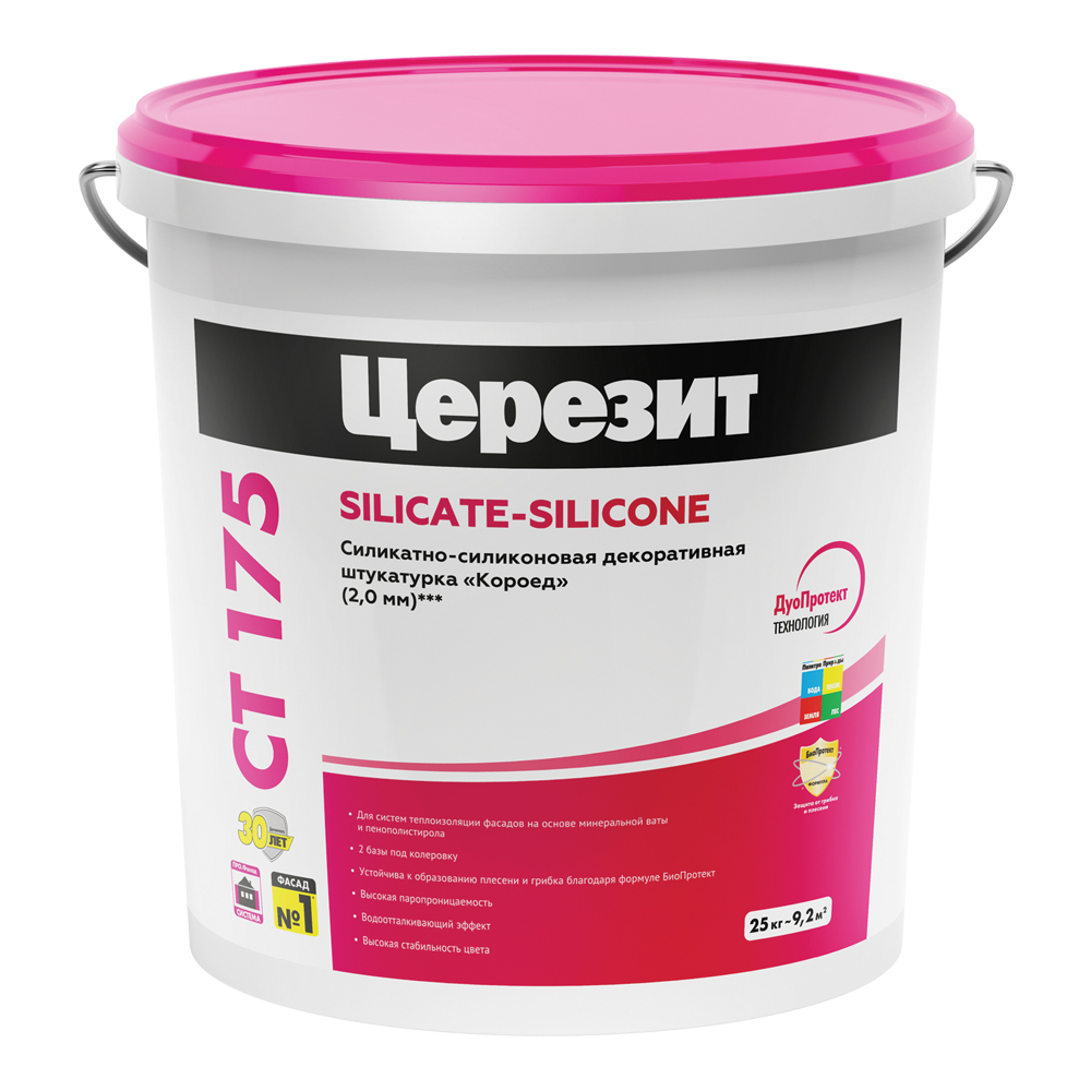 Штукатурка фасадная Церезит CT 175 силикатно-силиконовая короед 2 мм 25 кг