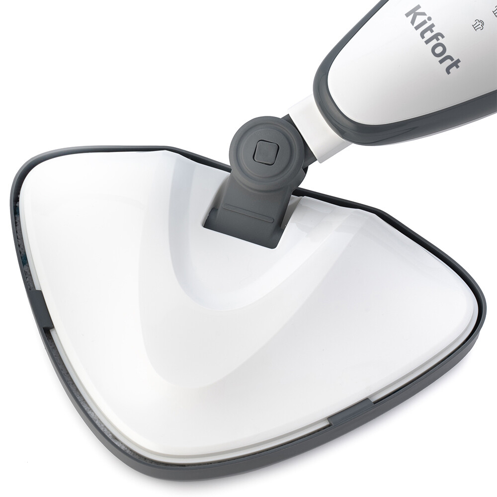 Паровая швабра Kitfort KT-1008 имеет 10 насадок и съемный ручной модуль, благодаря чему подходит для уборки: полов и стен, стеклянных поверхностей, тканевых вещей, сантехники для кухни и ванной, жалюз…